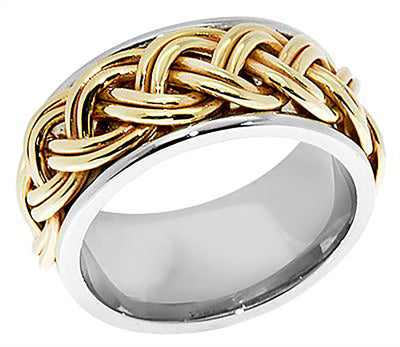 10MM Two Tone Solid Gold Double Braid Wedding Band
