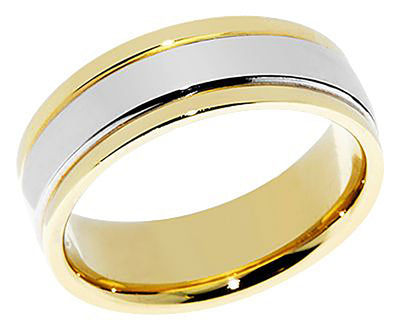 Designer 7MM Two Tone Solid Gold Plain Wedding Band