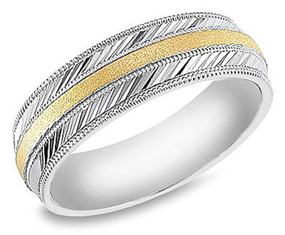 6.5MM Two Tone Gold Hand Etched with Milgrain Wedding Band