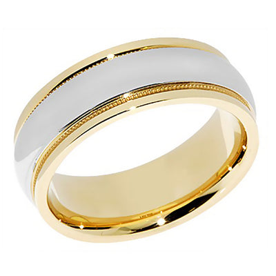 6.5MM Two Tone Gold with Milgrain Wedding Band
