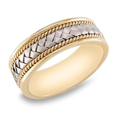 8MM Hand Braided Two Tone Solid Gold Rope Wedding Band