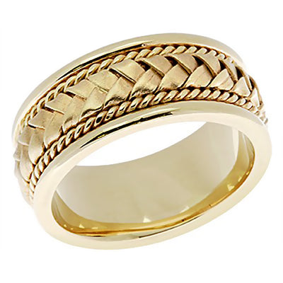 8MM Antique Design Hand Braided Solid Gold Wedding Band