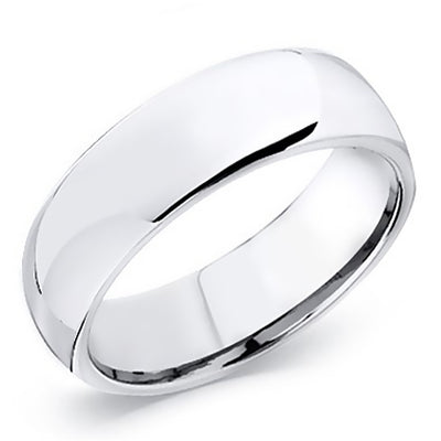 Solid White Gold 8MM Plain Dome Wedding Band Comfort Fit