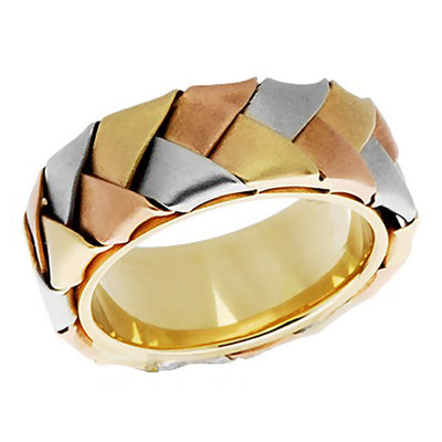 8MM Three Tone Gold Hand Braid with Yellow Gold Rope Wedding Band