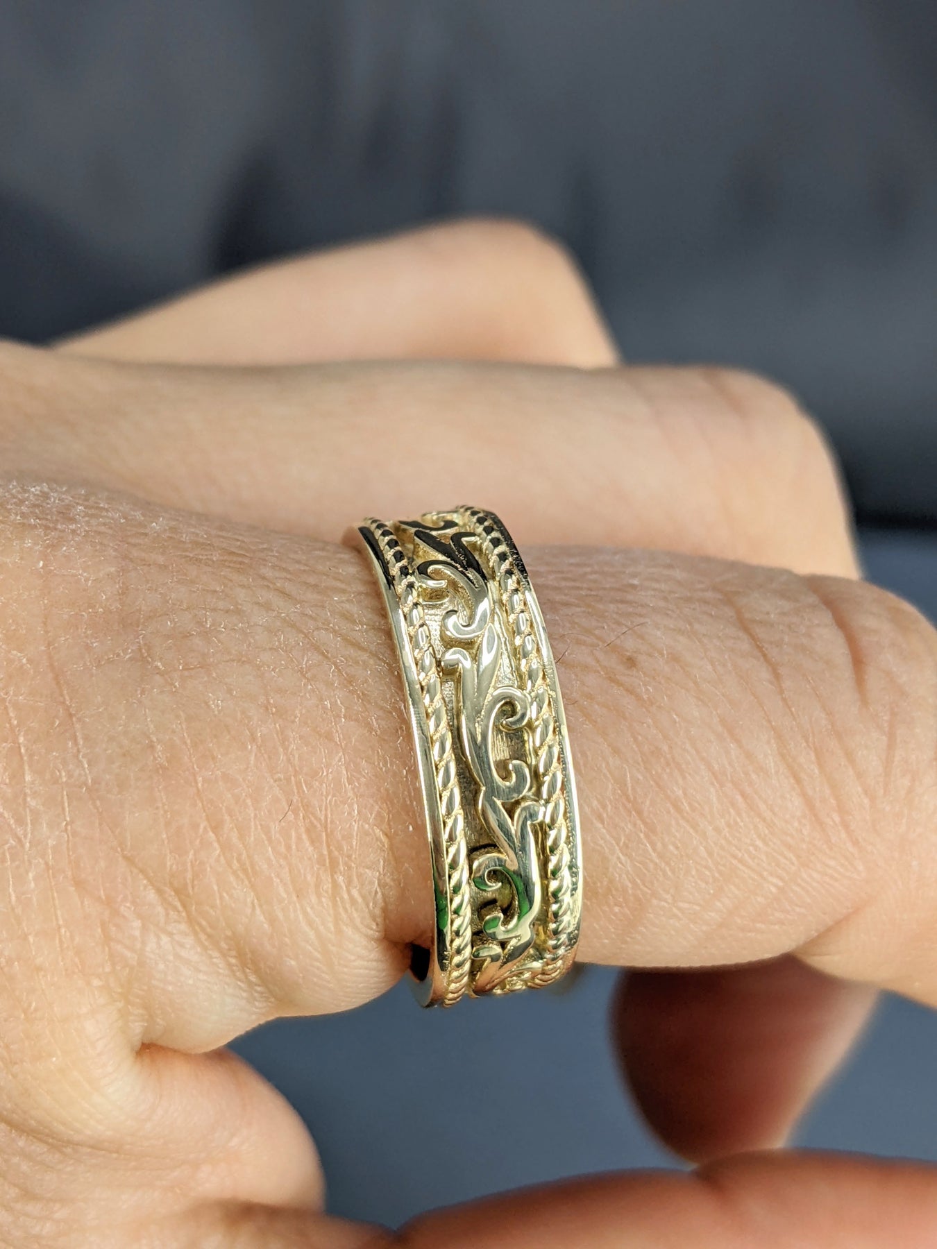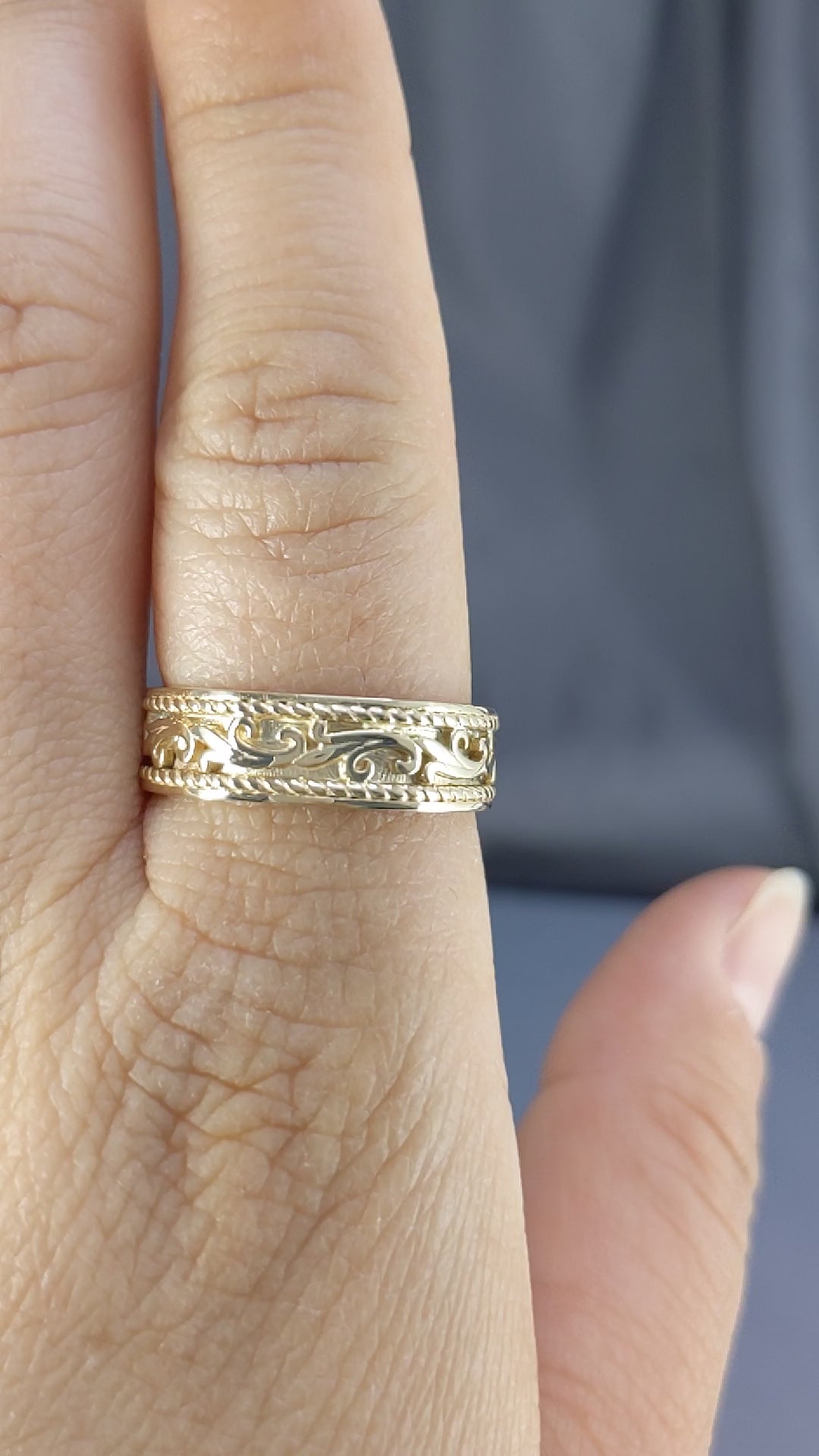 8MM Antique Design Hand Braided Solid Gold Wedding Band