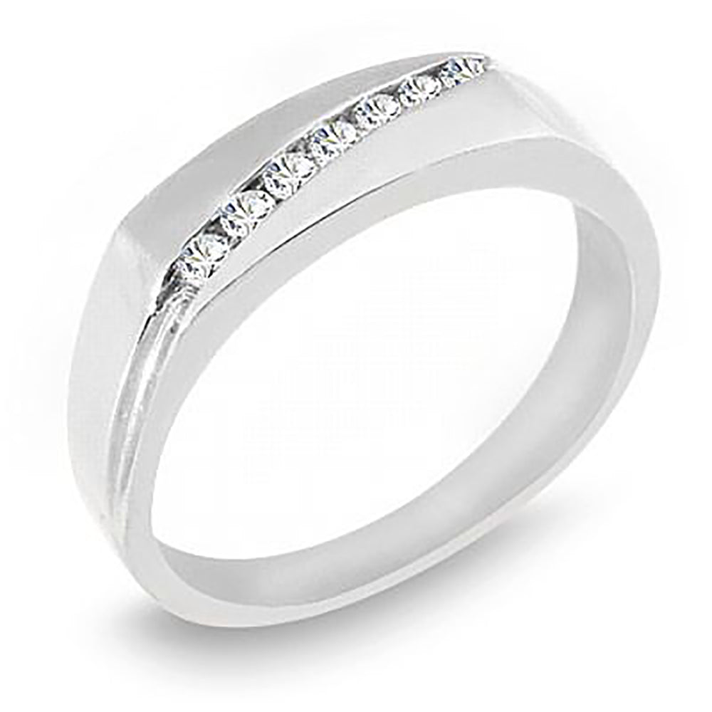 Men's diamond band with 0.33 ct. tw. round cut diamonds set at a diagonal channel line. Graded as VS Clarity and G-H Color. Approximately 3 mm in width and a high polish finish. Handcrafted in your choice of 14k Gold, 18k Gold, or Platinum 950 setting. We also offer a 1-Year Layaway program. You can reach us at 1-888-967-5353 to speak to one of our jewelry specialist.