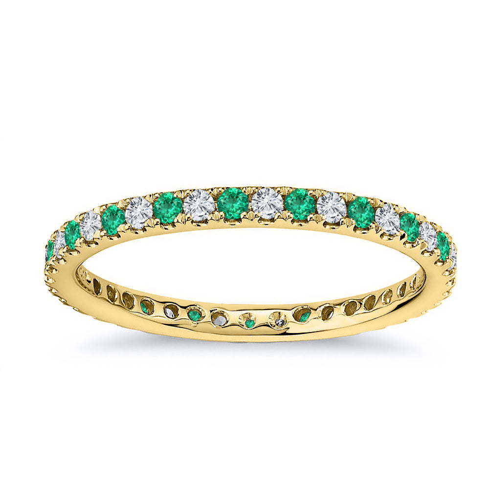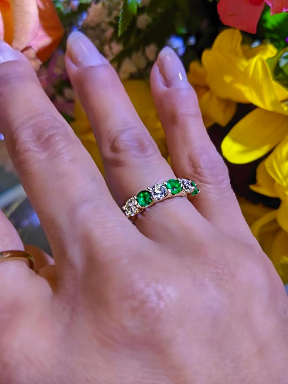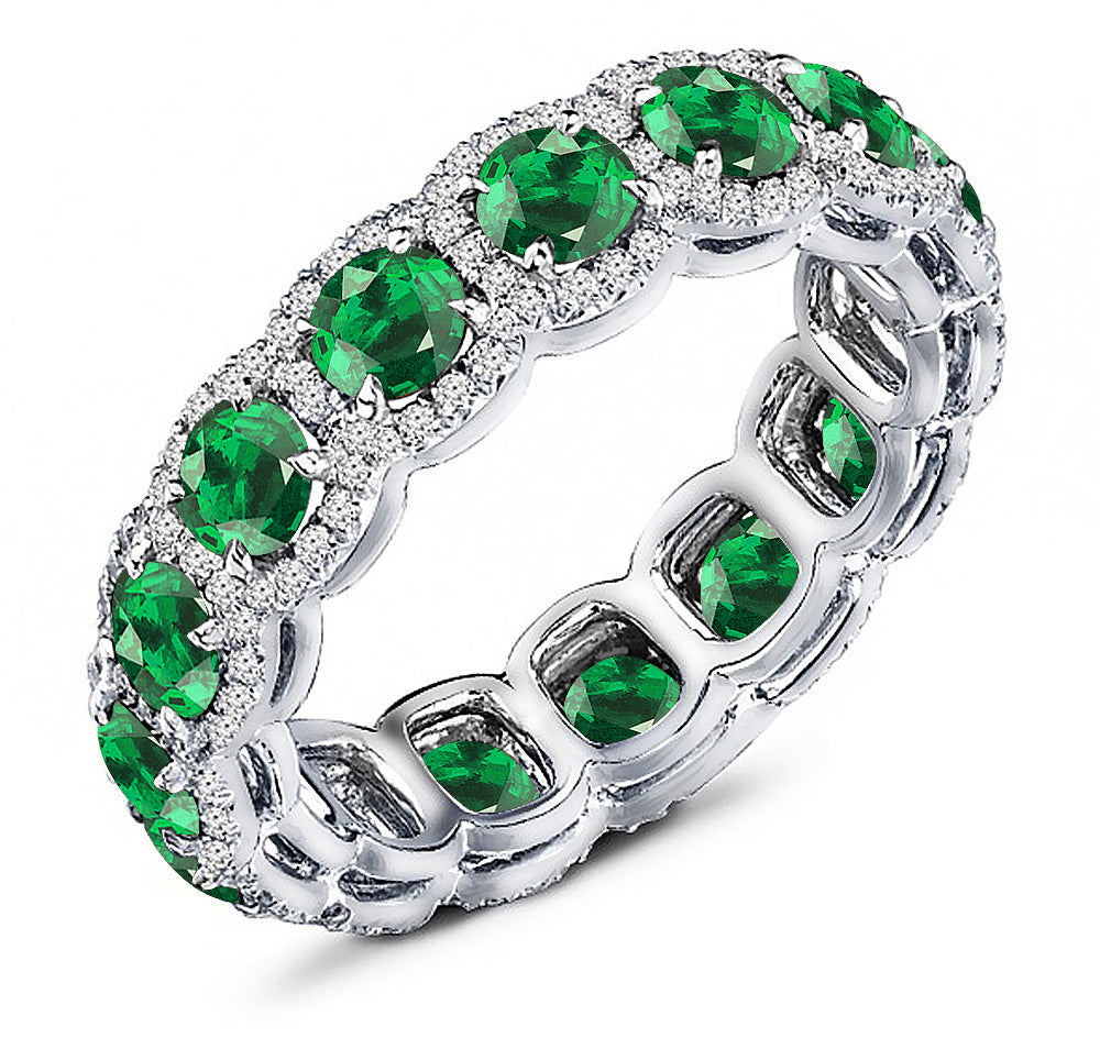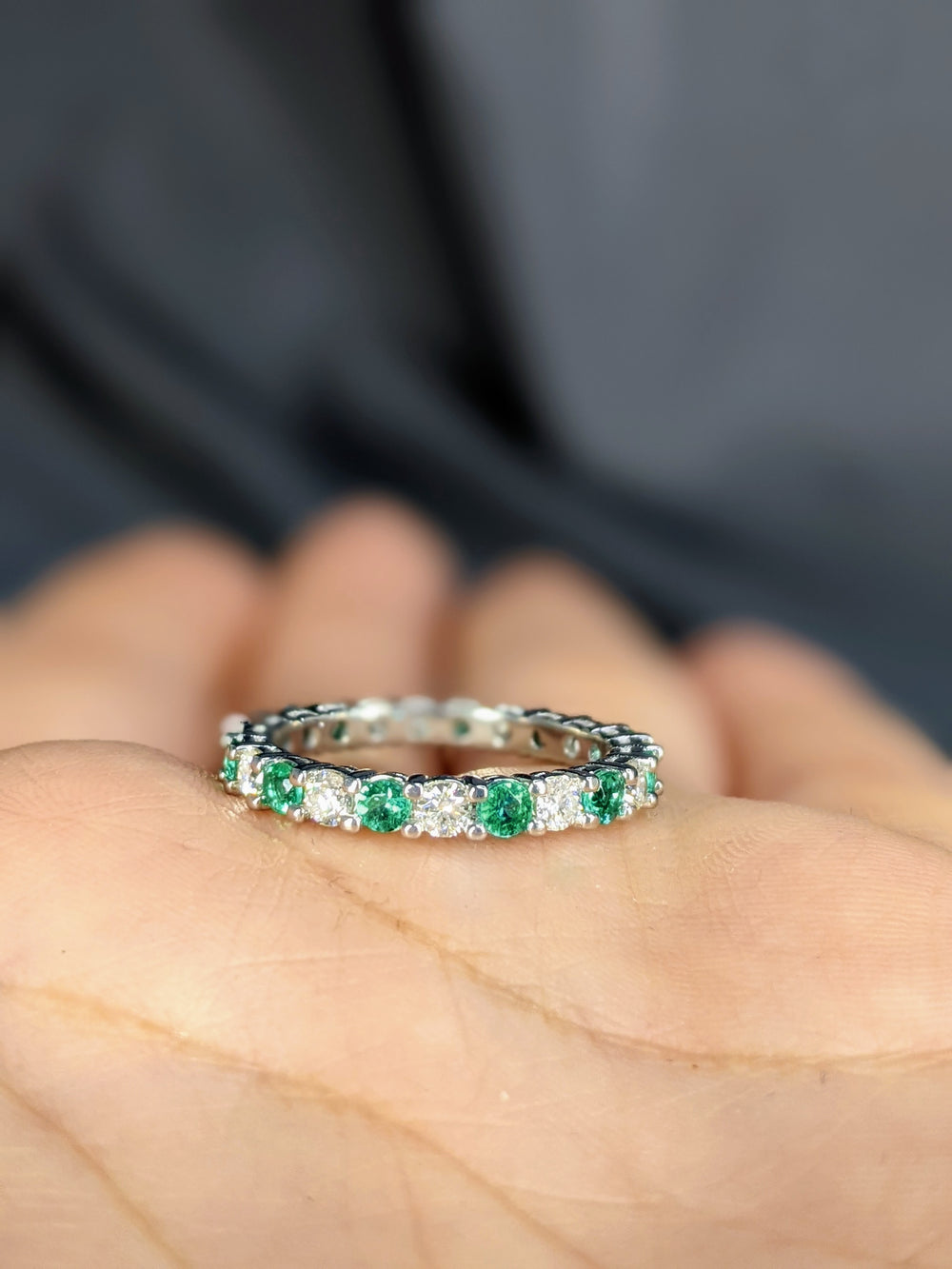 4.50 Carat Round Cut Diamond & Natural Green Emerald Eternity Band