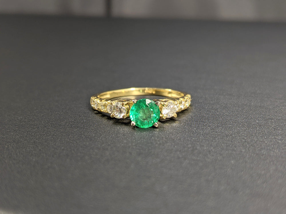 0.75 Ct. Tw. Round Cut Natural Green Emerald with 0.30 Ct. Tw. Diamond Ring