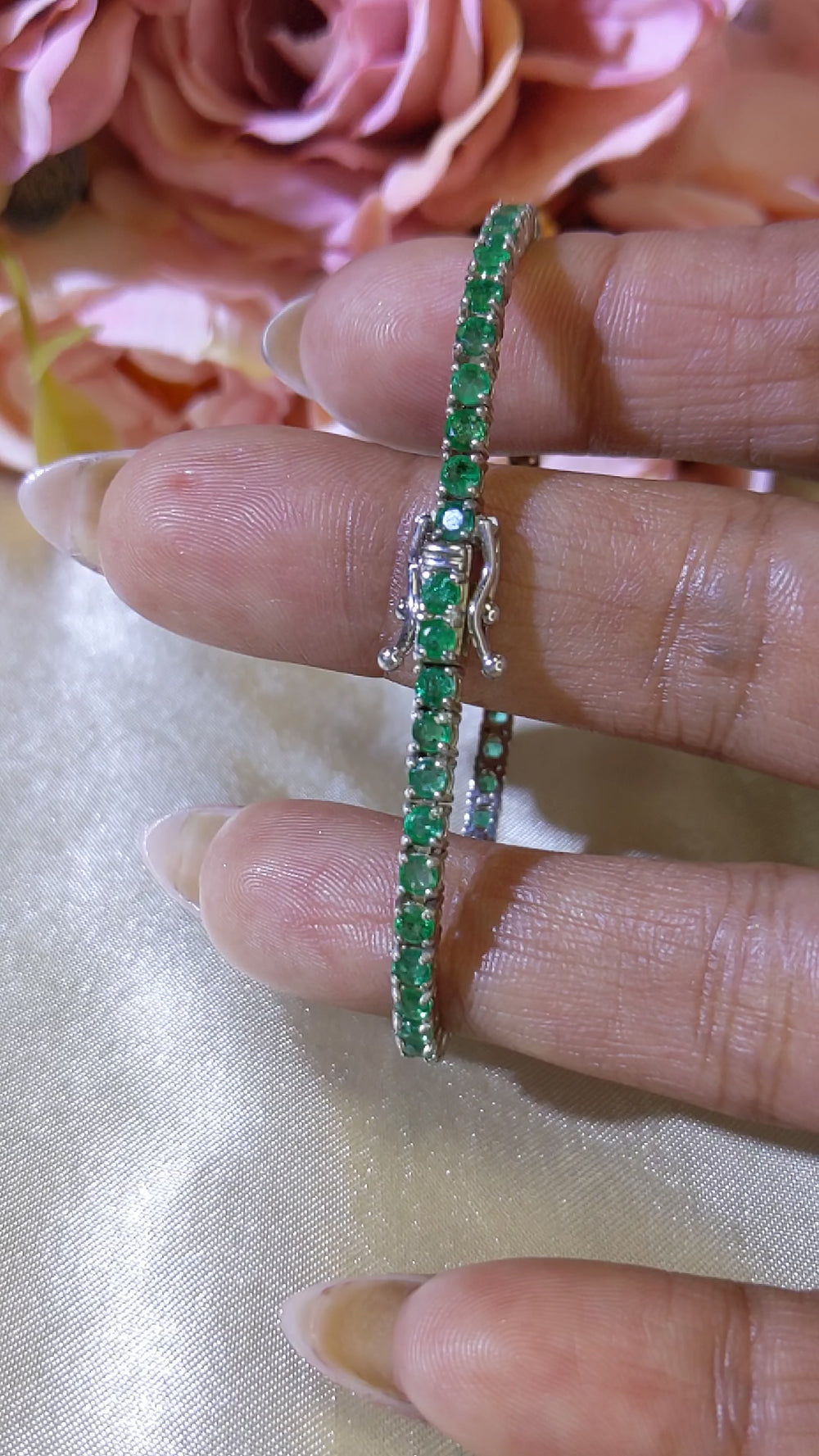 Classical Tennis 5.10 Ct. Tw. Round Cut Natural Green Emerald Bracelet