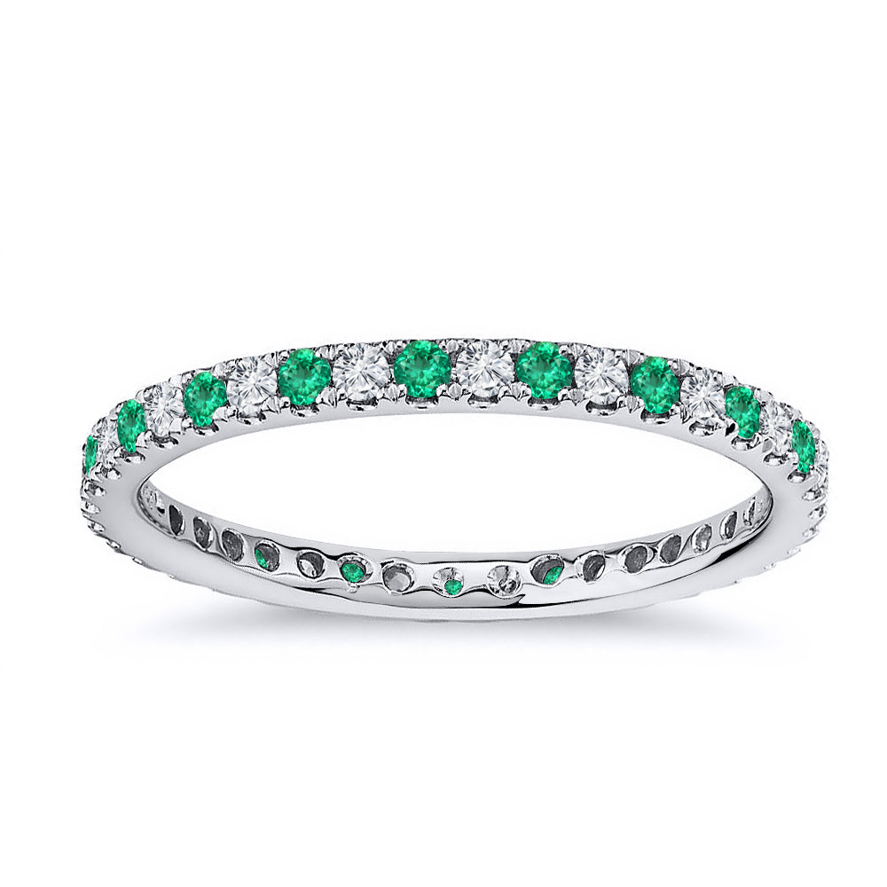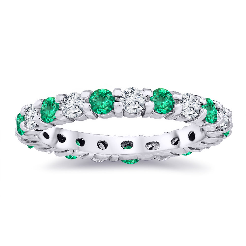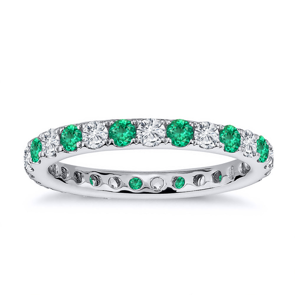 2.20 Carat Brilliant Round Diamond & Natural Green Emerald Wedding Eternity Band
