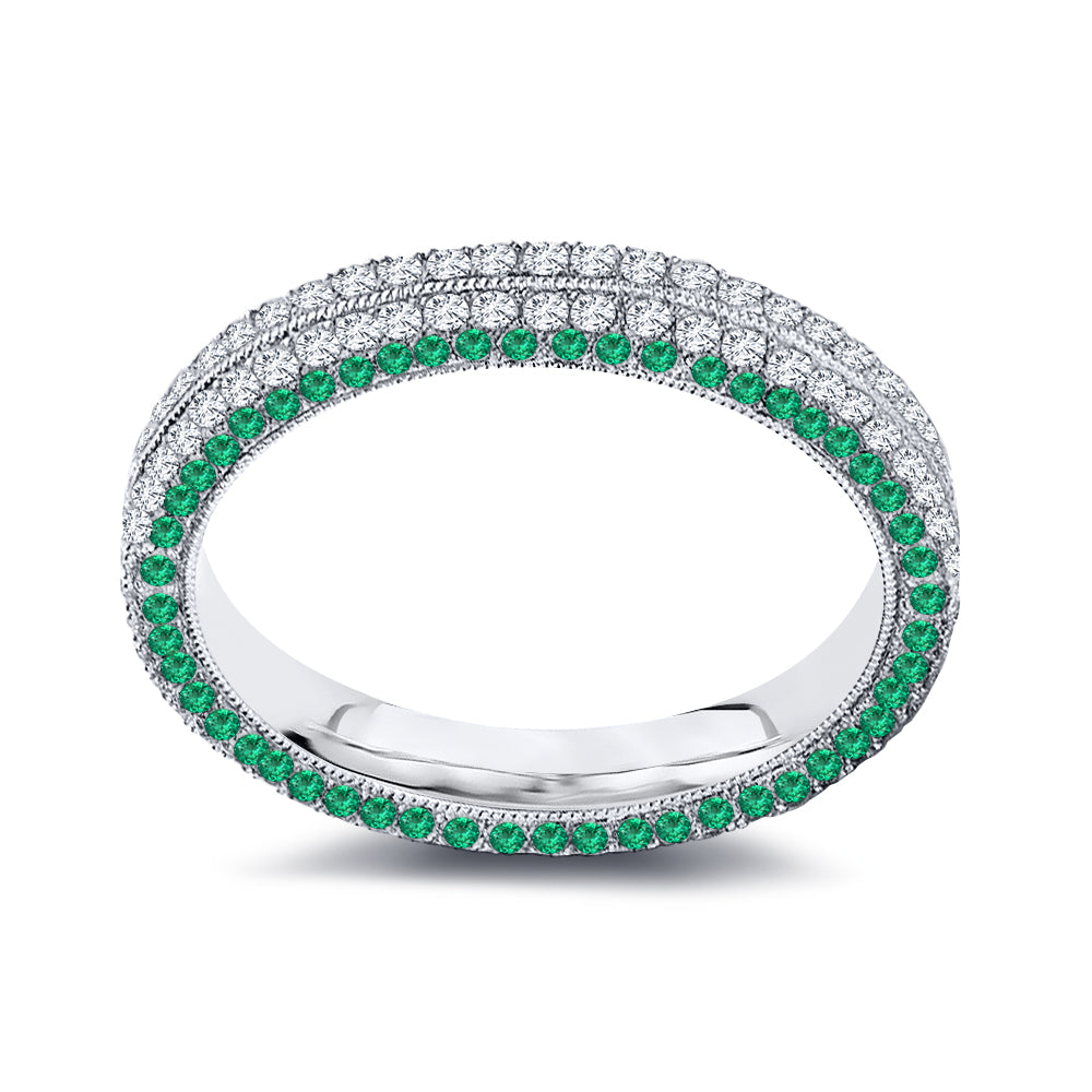 2.00 Ct. Tw. Round Cut Four Row Diamond & Natural Green Emerald Eternity Band