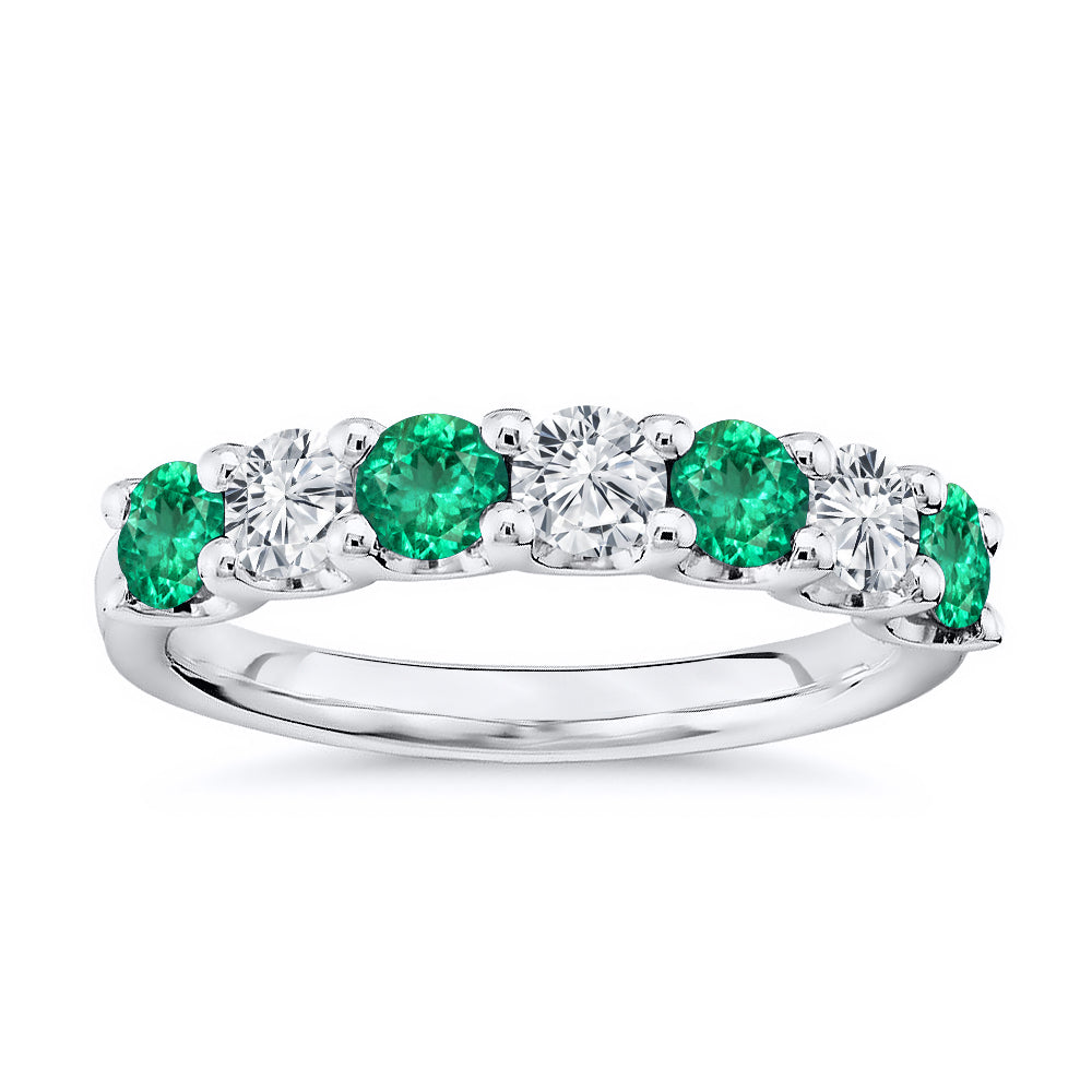 7 Stone 1.75 ct. Tw. Brilliant Round Cut Diamond and Natural Green Emerald Band