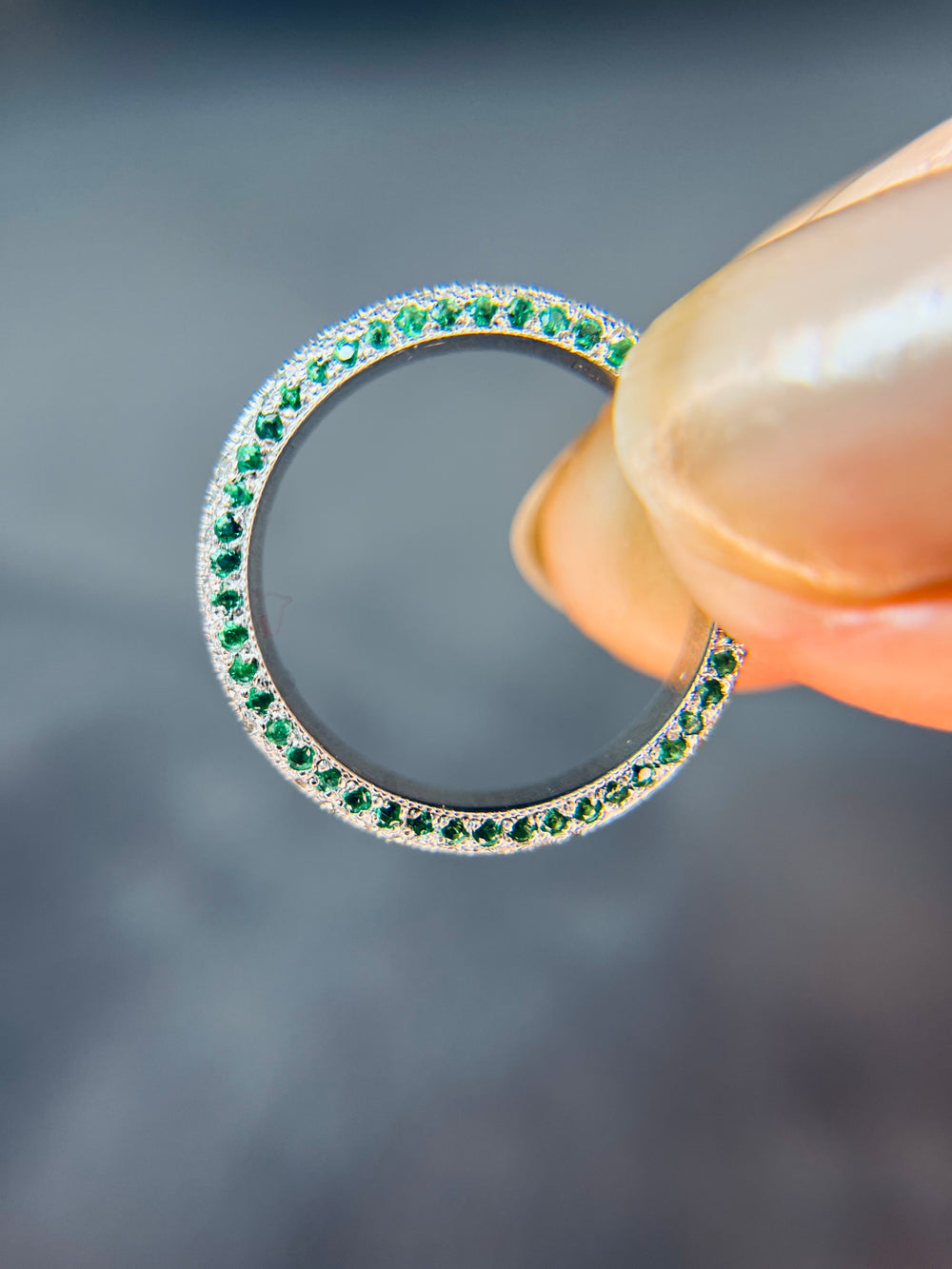 2.80 Carat Round Cut Diamond & Natural Green Emerald Eternity Band