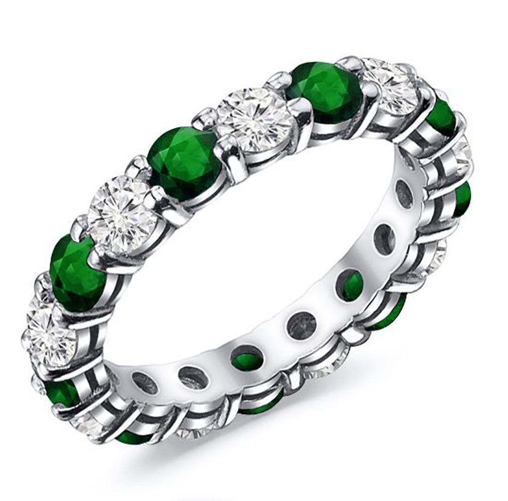 2.00 Carat Round Cut Diamond & Natural Green Emerald Eternity Band