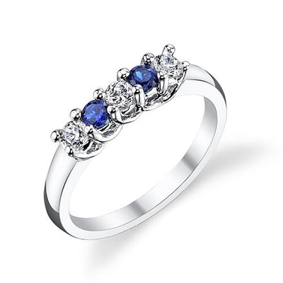 5-Stone 0.50 Carat Round Cut Diamond & Natural Blue Sapphire Band