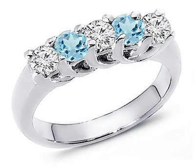5-Stone 0.50 Carat Brilliant Round Cut Diamond & Natural Topaz Band