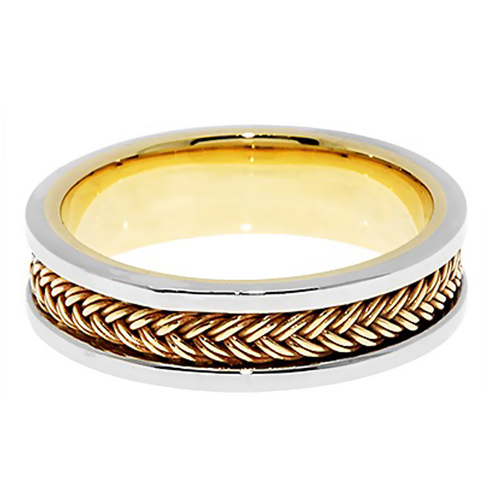 5mm Gold Wedding Band. This band has a hand braided design in the center and a polish finish. Handcrafted in your choice of 14k Gold or 18k Gold setting. We also offer a 1-Year Layaway program. You can reach us at 1-888-967-5353 to speak to one of our jewelry specialist.
