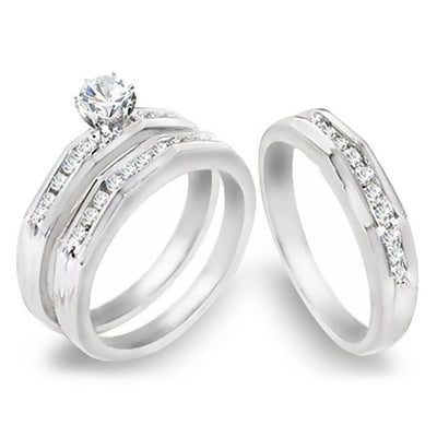 Our 14K White Gold His & Hers 3-Piece 0.85 Ct. Tw. Diamond Engagement & Wedding Band Set