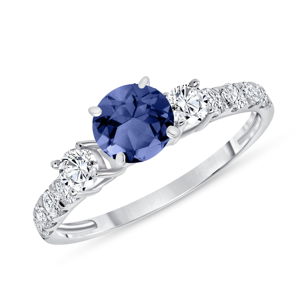 5MM Round Cut Natural Blue Sapphire & 0.58 Ct. Tw. Diamond Ring