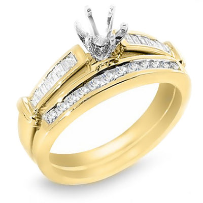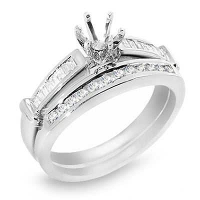 Ladies 0.85 Ct. Tw. Mix Cut Diamond Engagement Semi-Mount Ring & Wedding Band Set