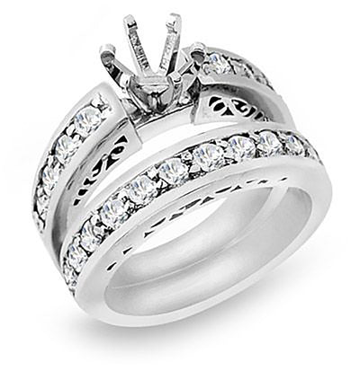 Ladies 1.45 Ct. Tw. Brilliant Round Diamond Semi-Mount Engagement Ring & Wedding Band Set