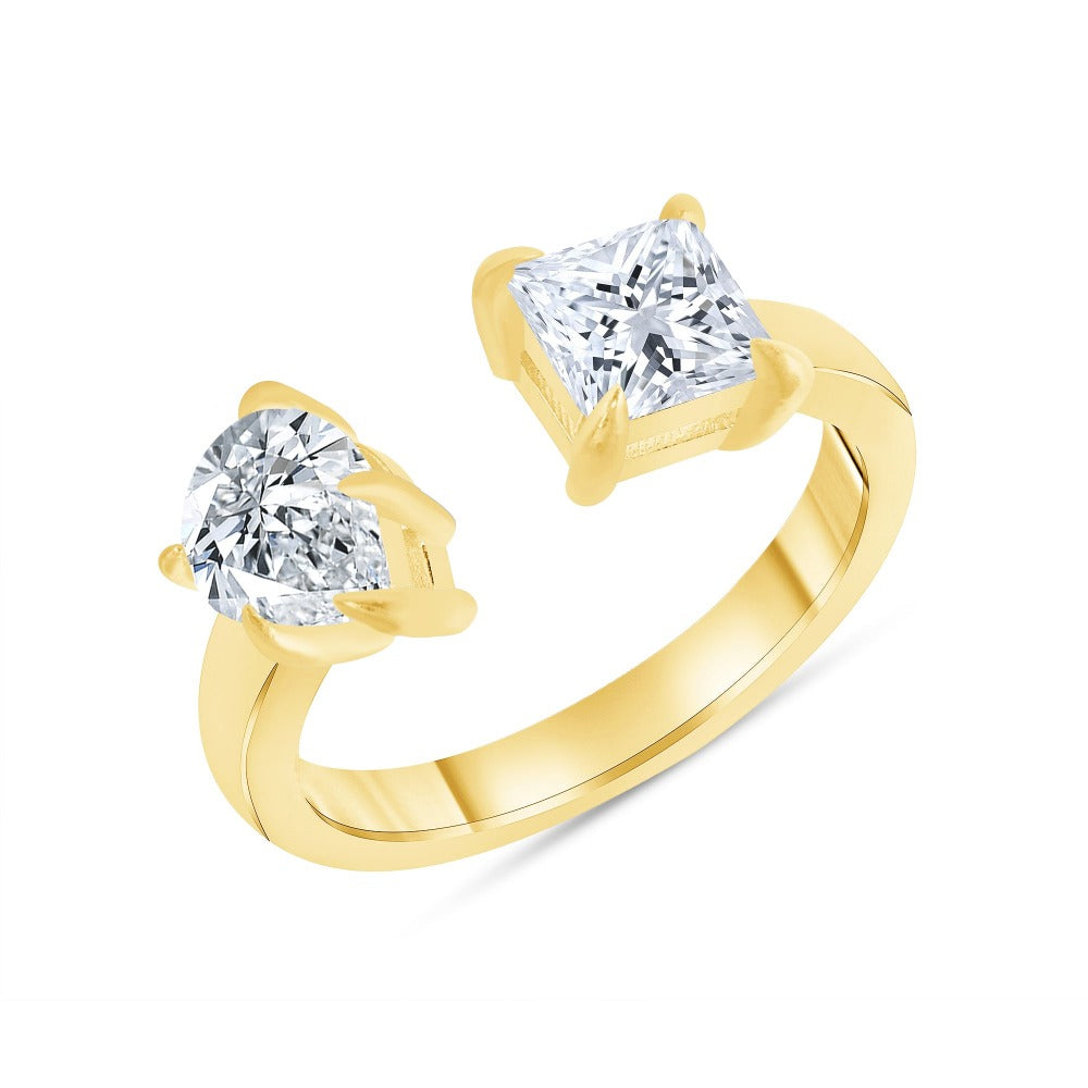 Two Stone Pear Cut and Princess Shape Diamond Engagement Ring 1.00 Carat