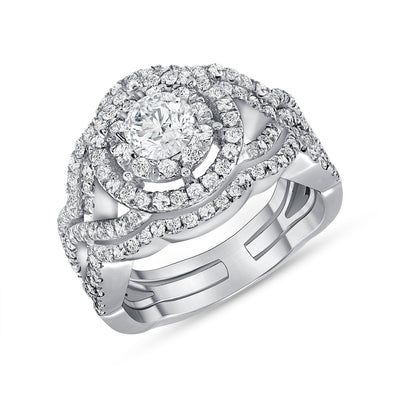 1.70 Ct. Tw. Halo Design Natural Diamond Wedding Engagement Ring Set
