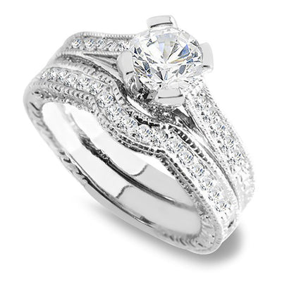 1.10 Carat Brilliant Round Diamond Antique Design Engagement Wedding Ring Set