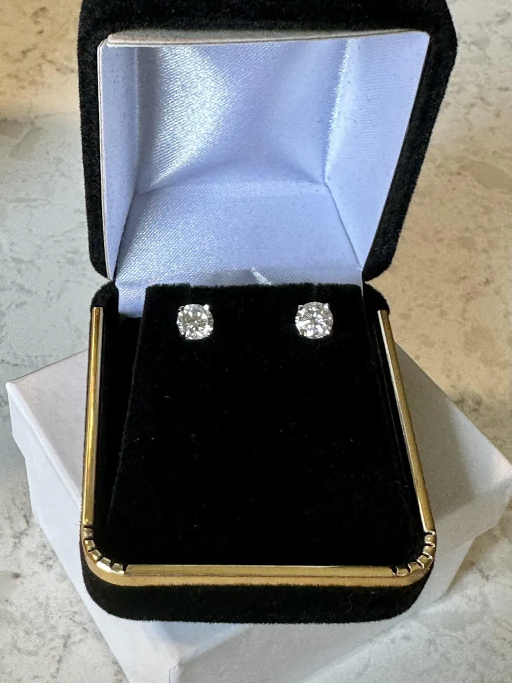 Elevate your elegance with these stunning 4-prong round cut lab grown diamond studs, available in sizes from 1.00 to 6.00 carats. Each earring features exceptional VS1 clarity and E color diamonds, meticulously set in your preferred metal—14k gold, 18k gold, or platinum 950—for timeless sophistication. Handcrafted with precision, these versatile studs complement any occasion while offering remarkable value. Make them yours with our flexible Affirm financing options. Contact our jewelry specialists at 1-888-967-5353 to find your perfect pair.