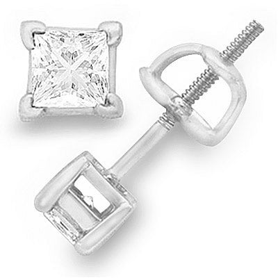 14k Gold 4-Prong Princess Cut Diamond Stud Earrings 1.00 ct. tw.