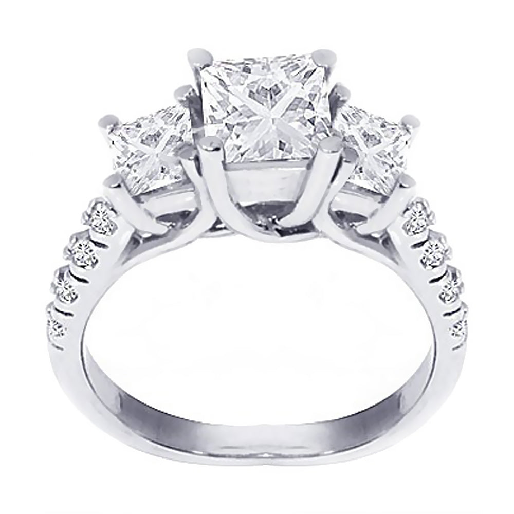 1.00 Carat Three Stone Inspired Princess Cut with Brilliant Round Diamond Engagement Ring Princess Cut
