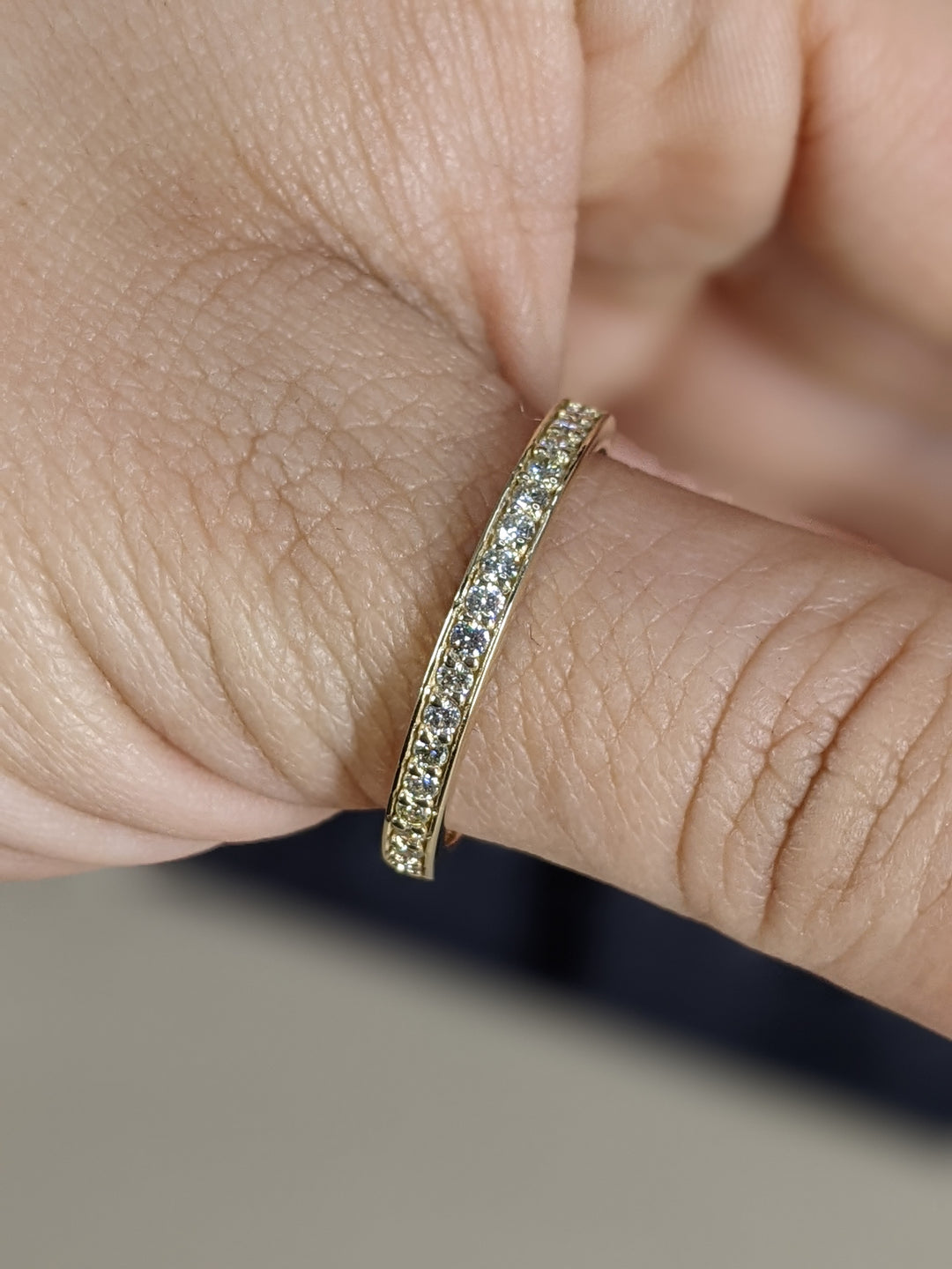 We guarantee all our pieces for a lifetime. If your piece ever has a problem. We will repair it. Free polishing, free diamond repair, and free resizing.