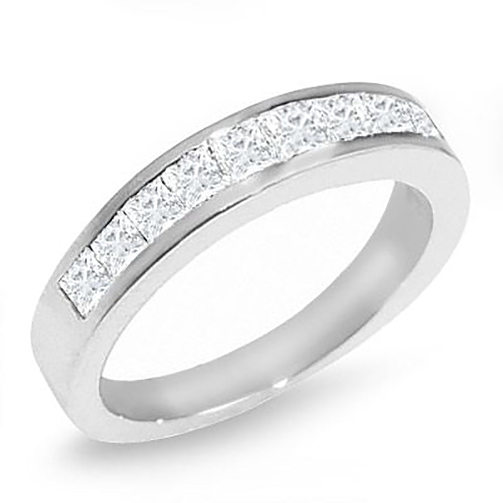 Ladies diamond band consists of 1.00 ct. tw. princess cut diamonds in a channel setting. The diamonds are graded as VS Clarity and G-H Color. Handcrafted in your choice of 14k Gold, 18k Gold, or Platinum 950 setting. We also offer a 1-Year Layaway program. You can reach us at 1-888-967-5353 to speak to one of our jewelry specialist.