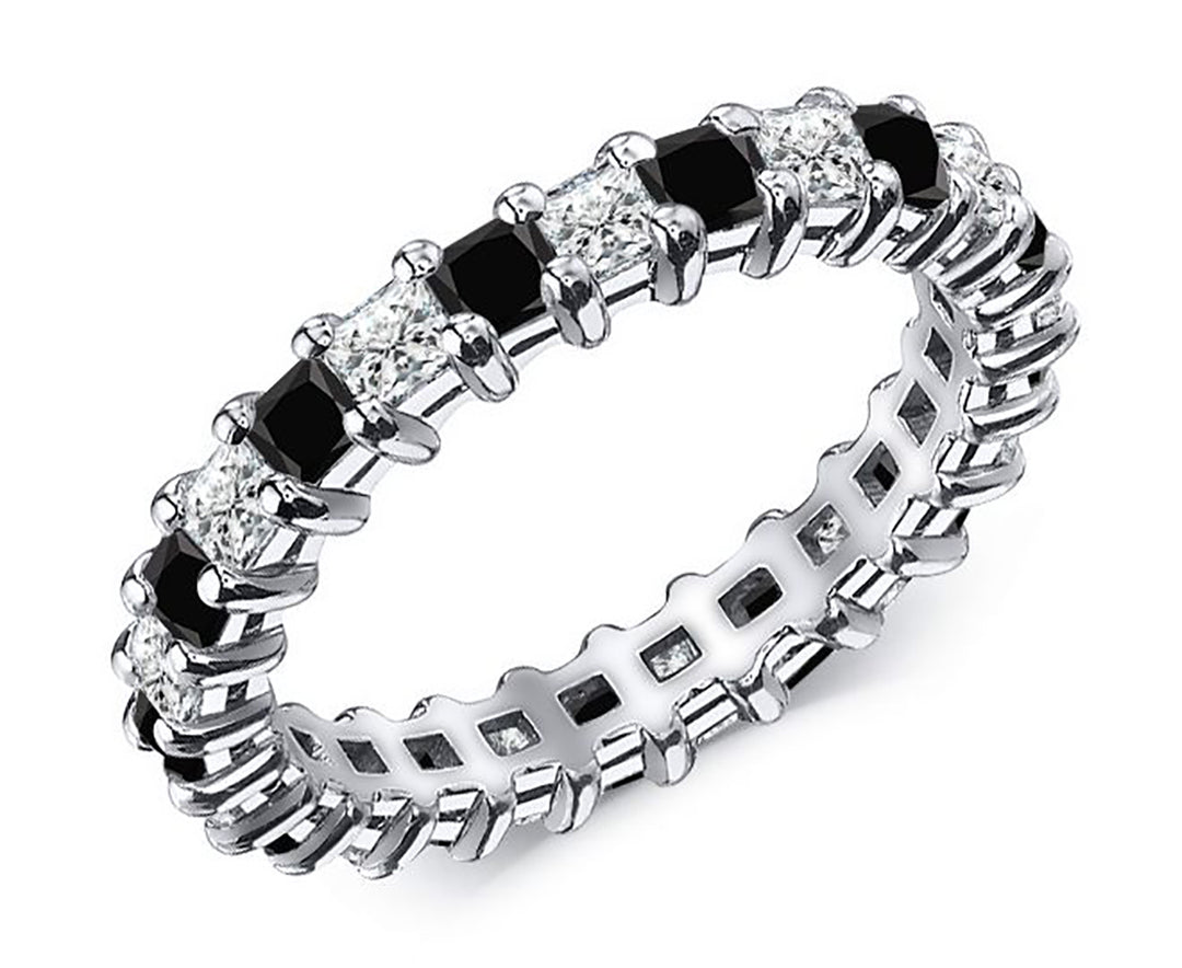 1.50 Carat Princess Cut Black & White Diamond Eternity Band