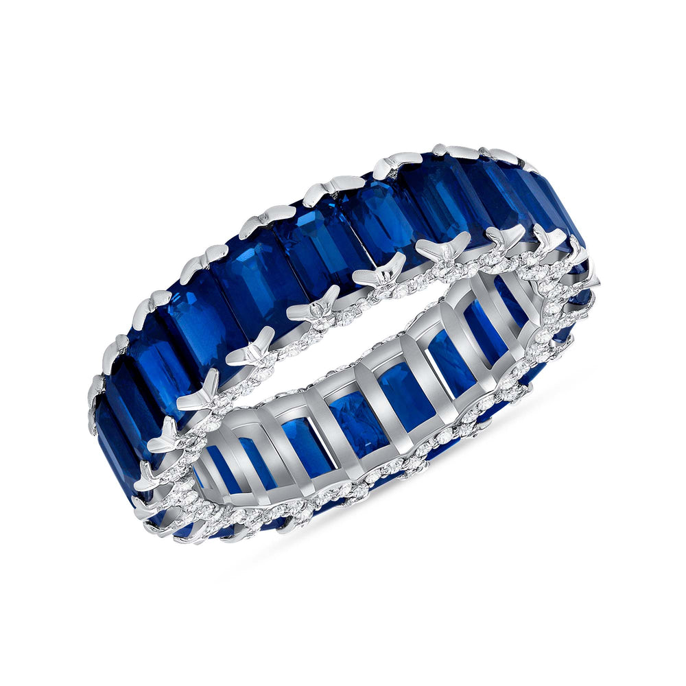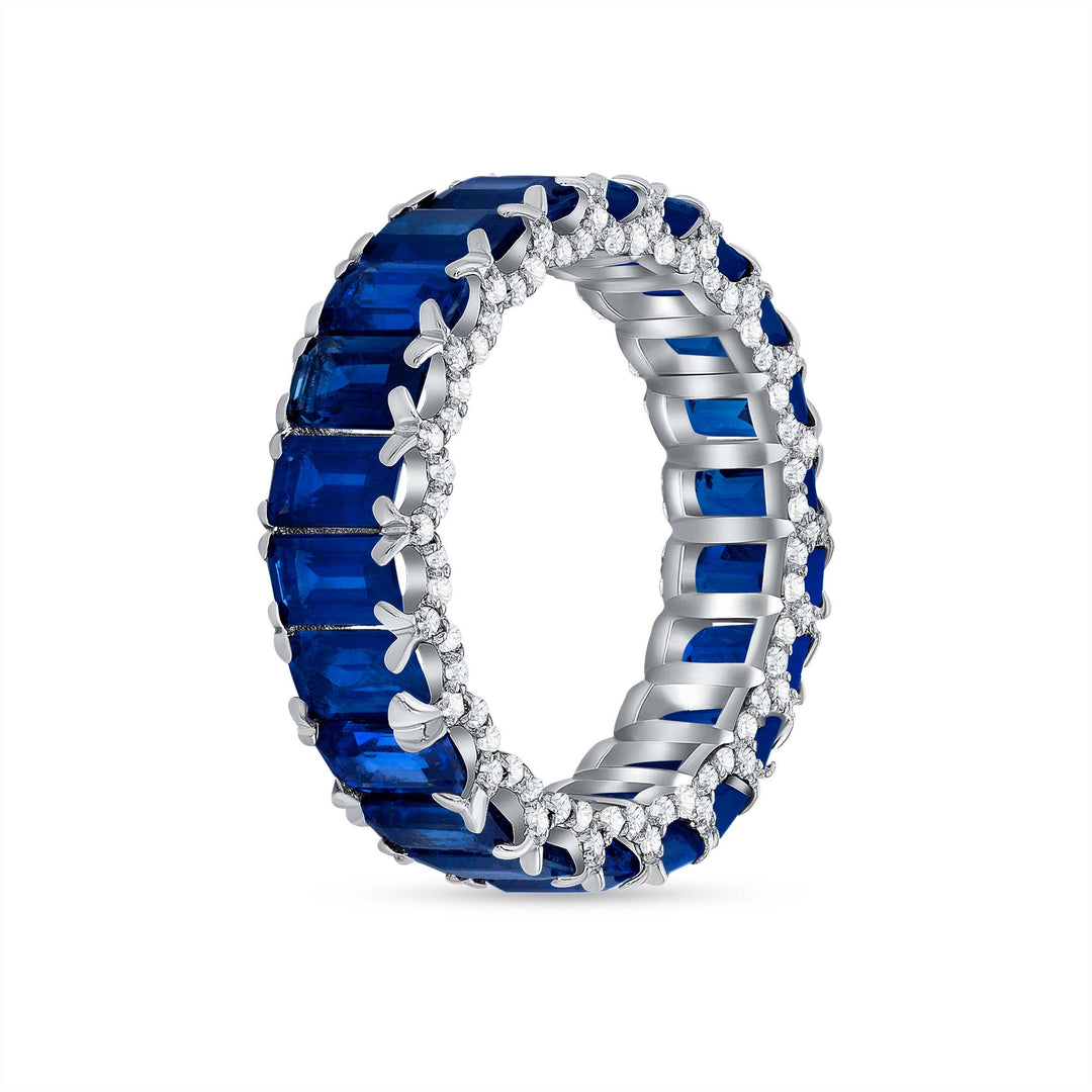 6.00 Ct. Tw. Emerald Cut Natural Blue Sapphire with 0.50 Ct. Tw. Round Diamonds Eternity Ring