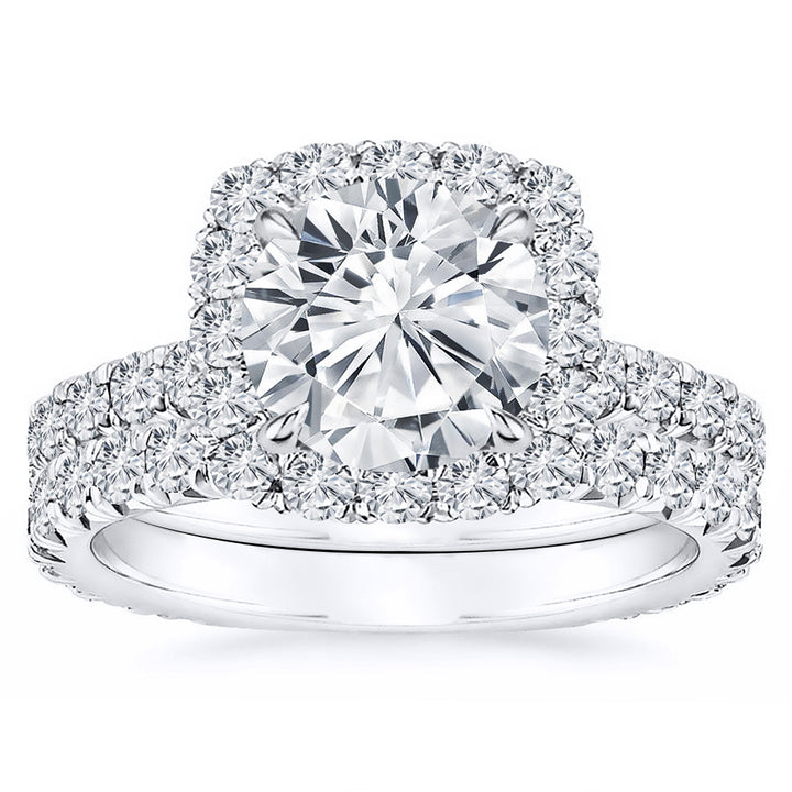 1.70 Ct. Tw. Halo Design Natural Diamond Wedding Engagement Ring Set