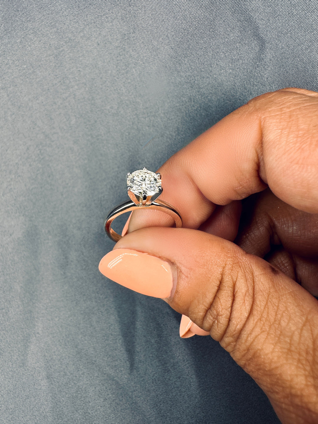 This stunning solitaire ring consists of a 1.25 ct. tw. round brilliant cut diamond in a comfort fit ring. It is graded as SI Clarity and G-H Color. All items are handcrafted in the option of 14k Gold, 18k Gold, or Platinum 950 setting. We also offer a 1-year Layaway program. You can reach us at 1-888-967-5353 to speak to one of our jewelry specialist.