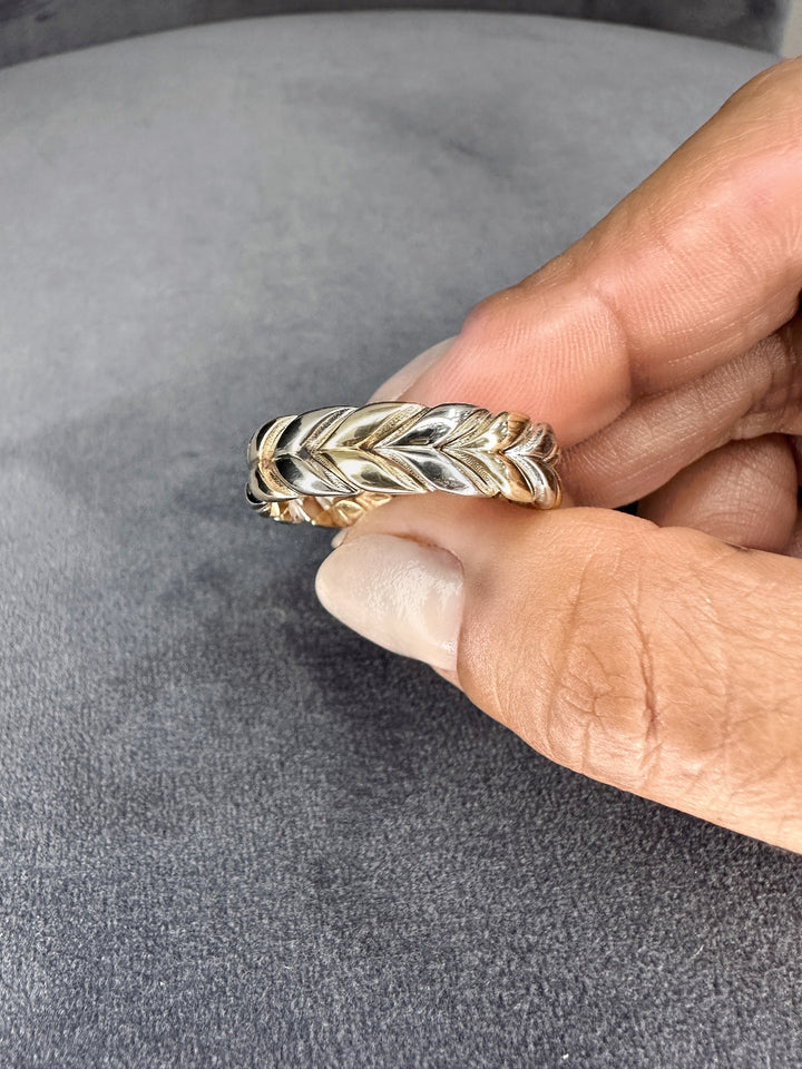 7MM Two Tone Gold Solid Braid Wedding Band