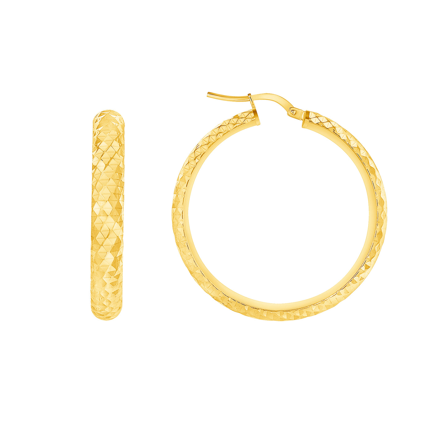 Italian Sterling Silver Gold Plated 35mm Diamond Cut Textured Lightweight Hoop Earrings