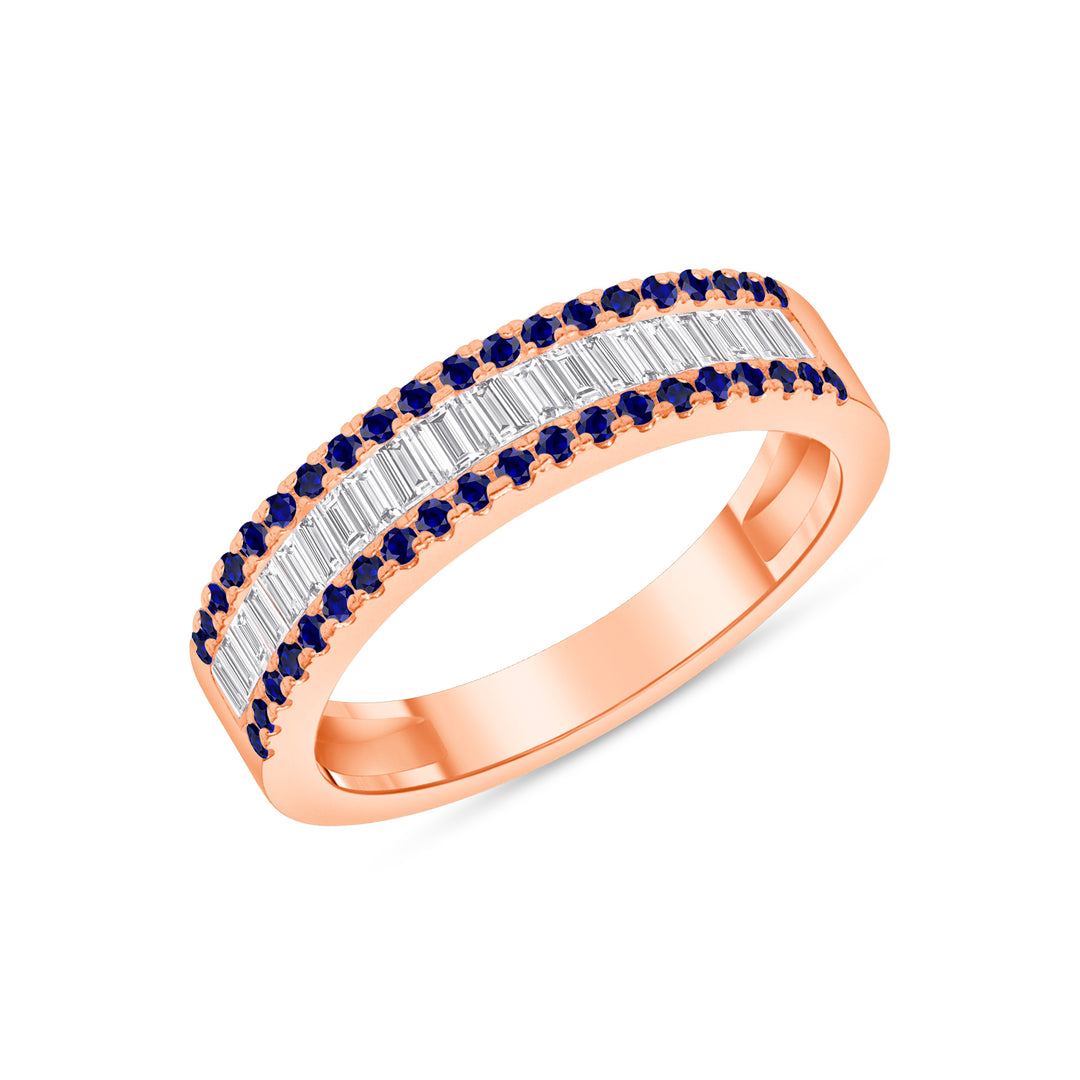 Elizabeth 0.50 CTW. Round Cut Sapphire and Natural Baguette Cut Diamond Channel Set Band H,SI1