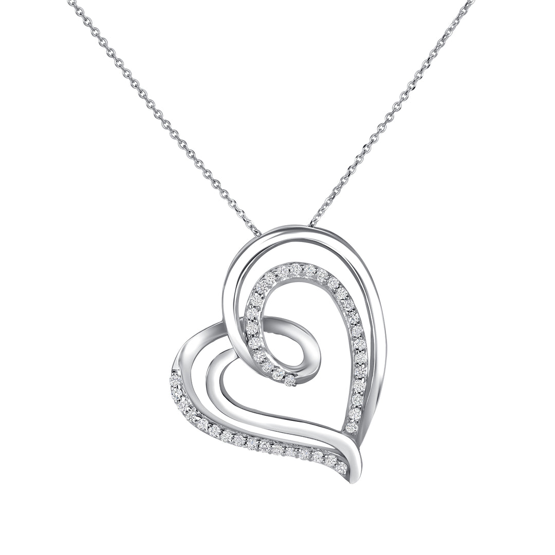 Intertwined Double Heart 0.65 Carat Round Cut Natural Diamond Pendant 17" Chain