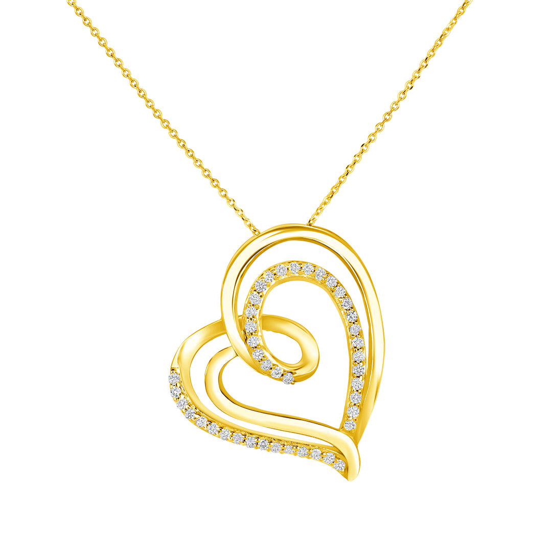 This stunning pendant features intertwined double hearts, each adorned with a 0.65 carat round cut natural diamond. The 17" chain adds a touch of elegance and grace. Show your love with this sparkling and heartfelt piece.