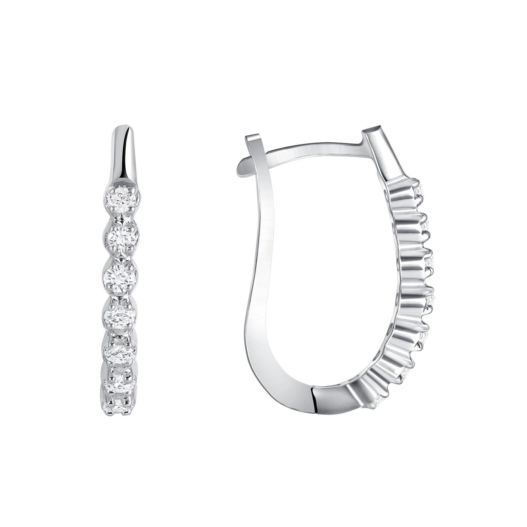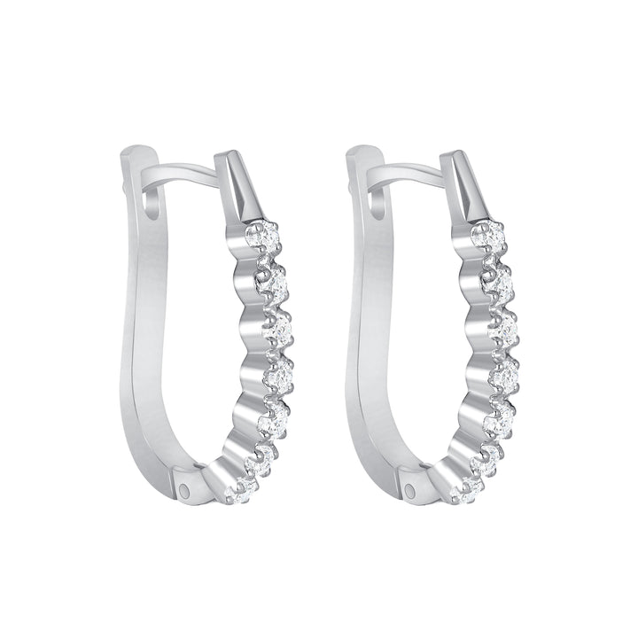 Ladies gold diamond earrings. Beautiful hoop earrings that accentuate and shine perfectly. With a total of 0.68 ct. round cut diamonds graded as SI Clarity and G-H Color. Handcrafted in 14k Gold. We also offer a 1-Year Layaway program. You can reach us at 1-888-967-5353 to speak to one of our jewelry specialist.