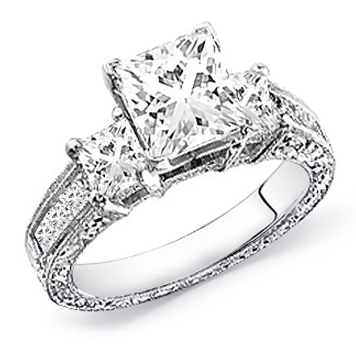 1.50 Carat Princess Cut Three Stone Diamond Engagement Ring