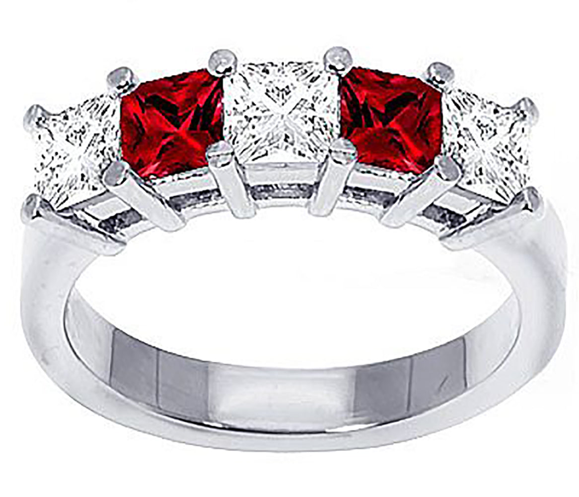 1.40 Carat Princess Cut Diamond & Natural Ruby Band