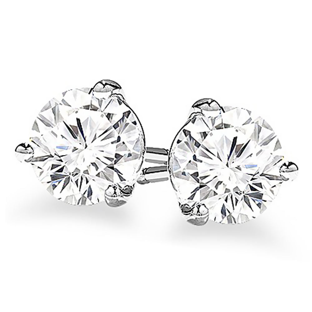 3-Prong Round Cut Diamond Stud Earrings 3/4 Carat