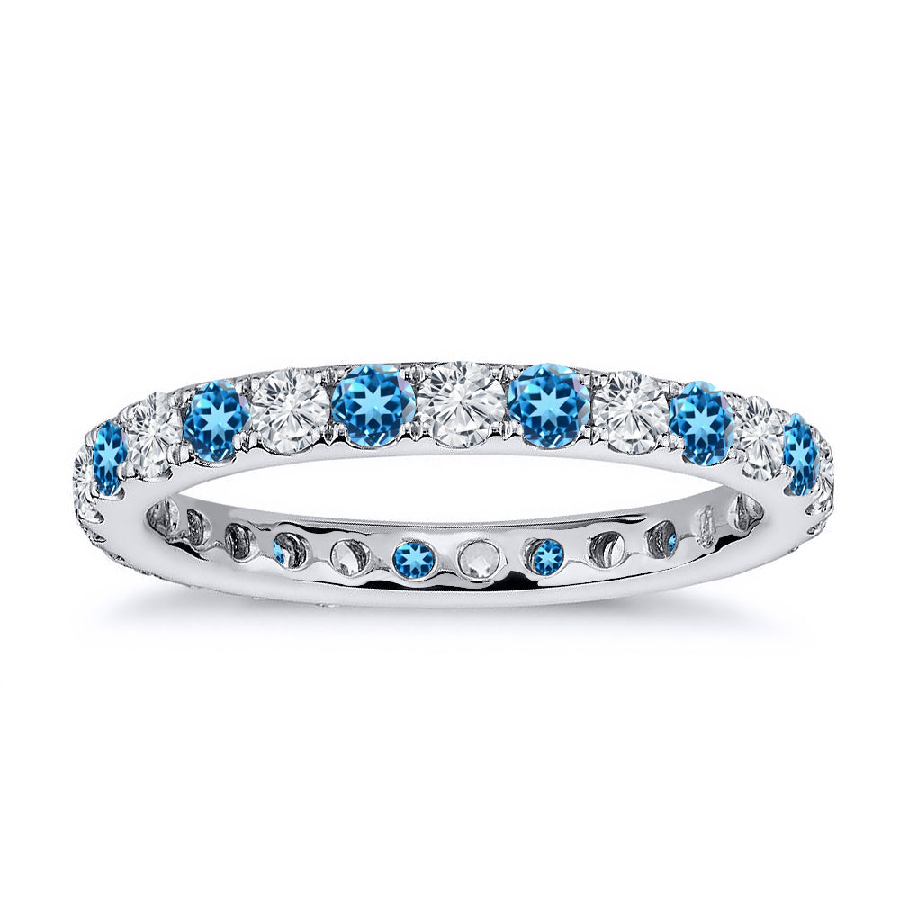 2.20 Carat Diamond & Natural Swiss Blue Topaz Eternity Band
