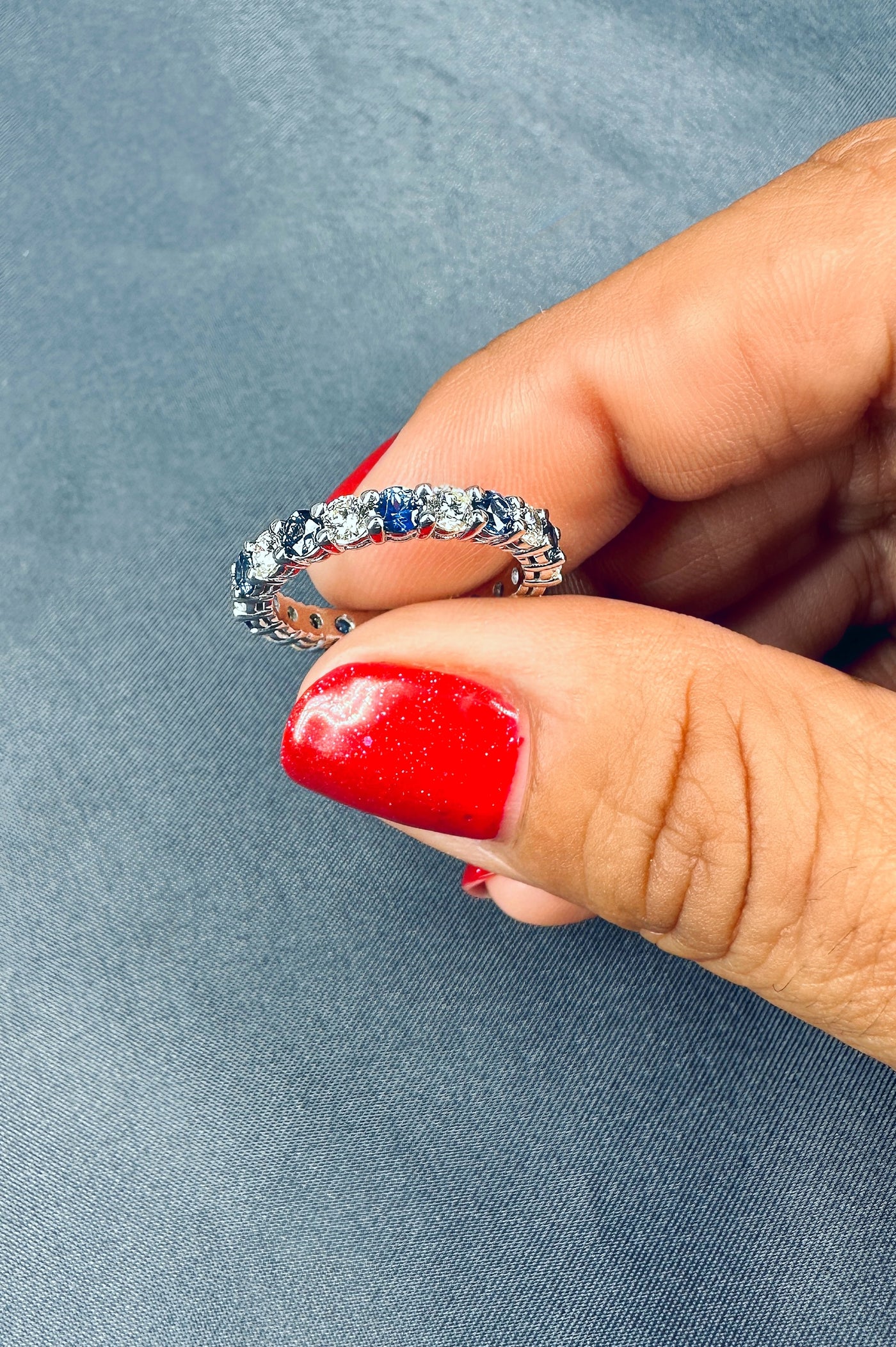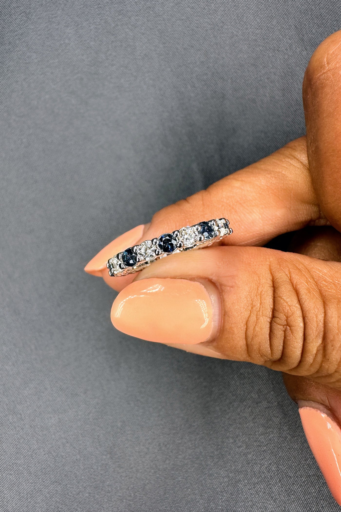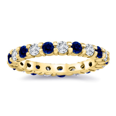 2.80 Ct. Tw. Brilliant Round Cut Diamond & Natural Blue Sapphire Eternity Band