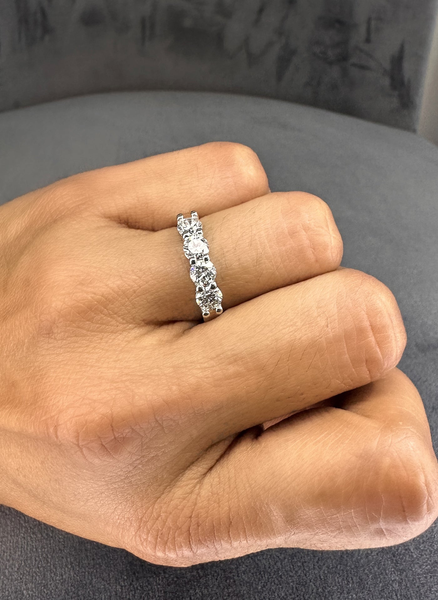 4-Stone 1.20 Carat Round Cut Diamond Band Shared Prong (4 mm, 0.30 ct. Each Stone)
