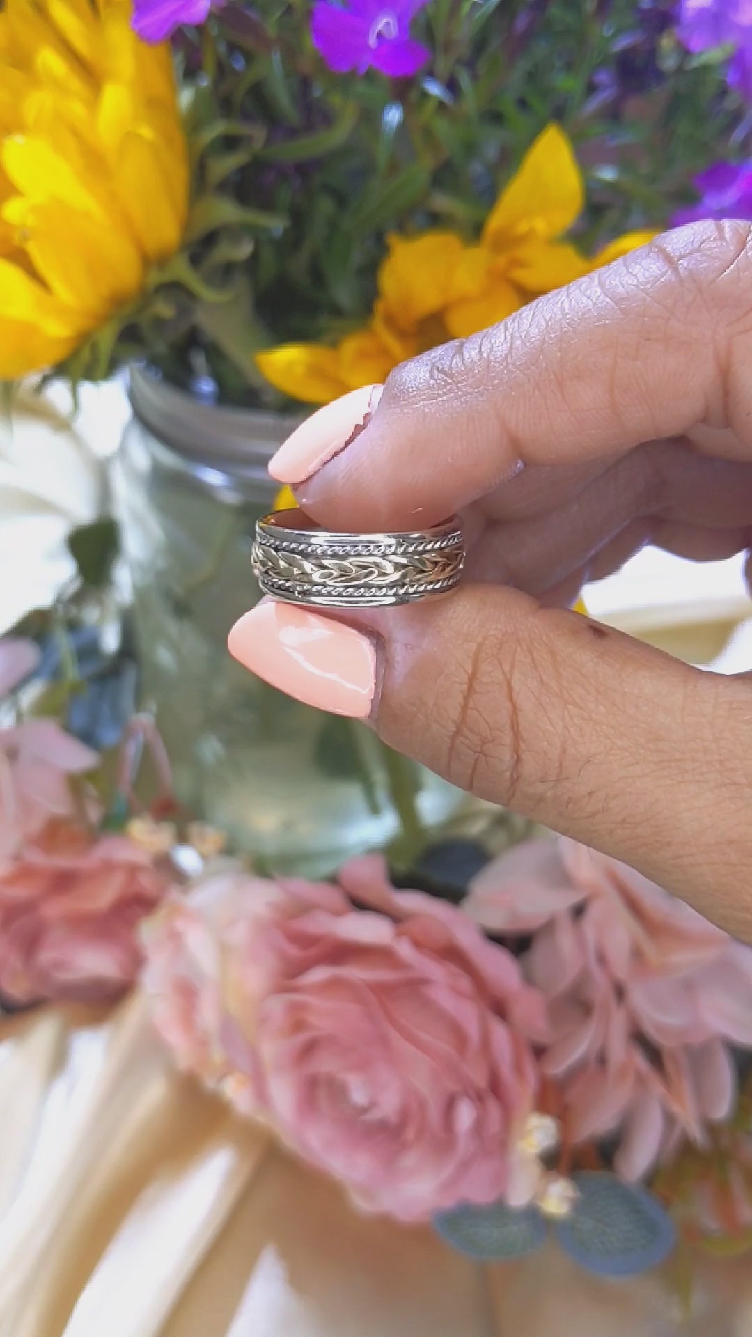 7mm hand braided with rope wedding band features a large braided rope in the center with smaller ropes, one on each side of the braid with a satin and high polish finish, comfort-fit band. Handcrafted in your choice of 14k Gold or 18k Gold setting. We also offer a 1-Year Layaway program. You can reach us at 1-888-967-5353 to speak to one of our jewelry specialist.